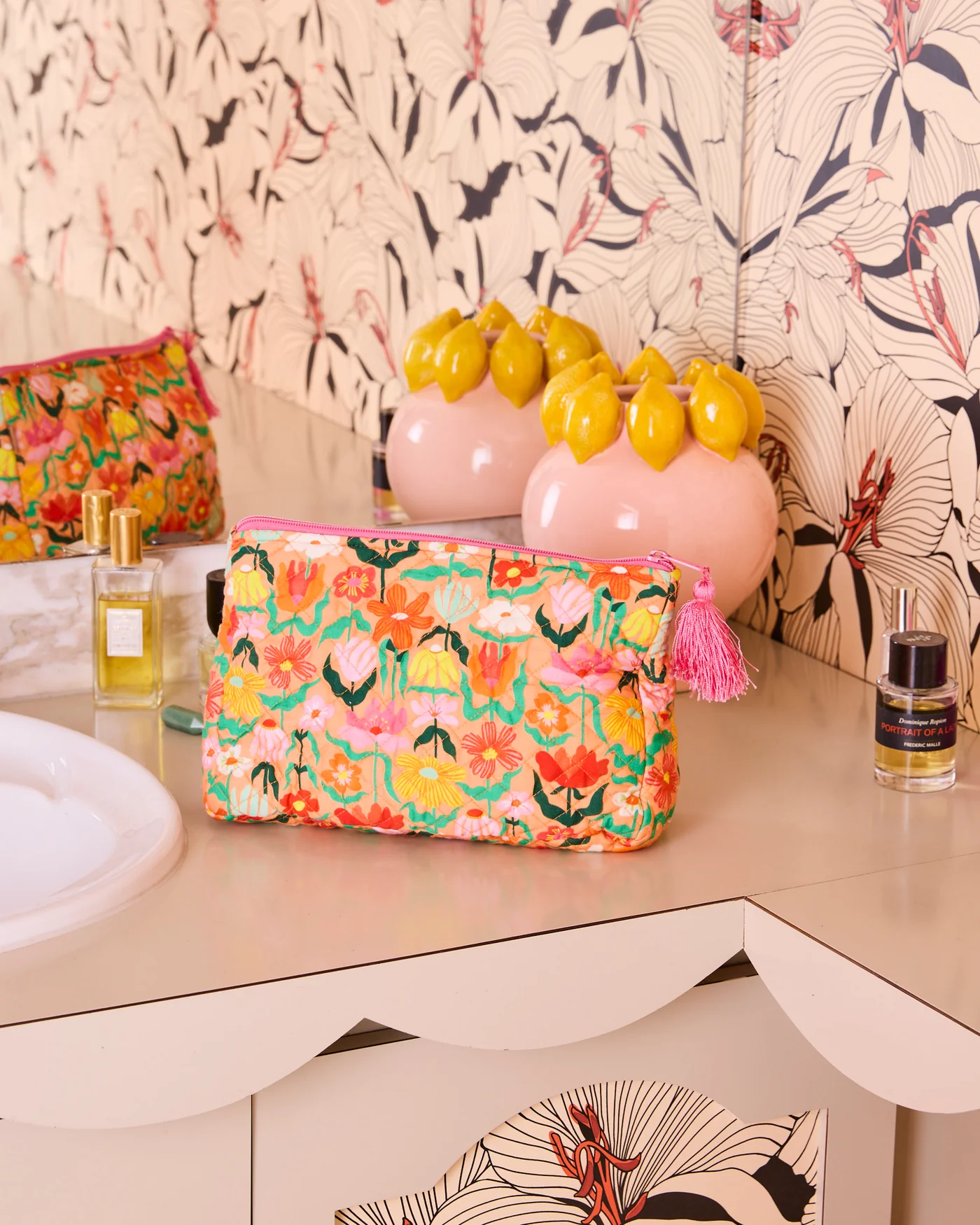 kip & co – Popping Flowers Peach Quilted Cotton Toiletry Case