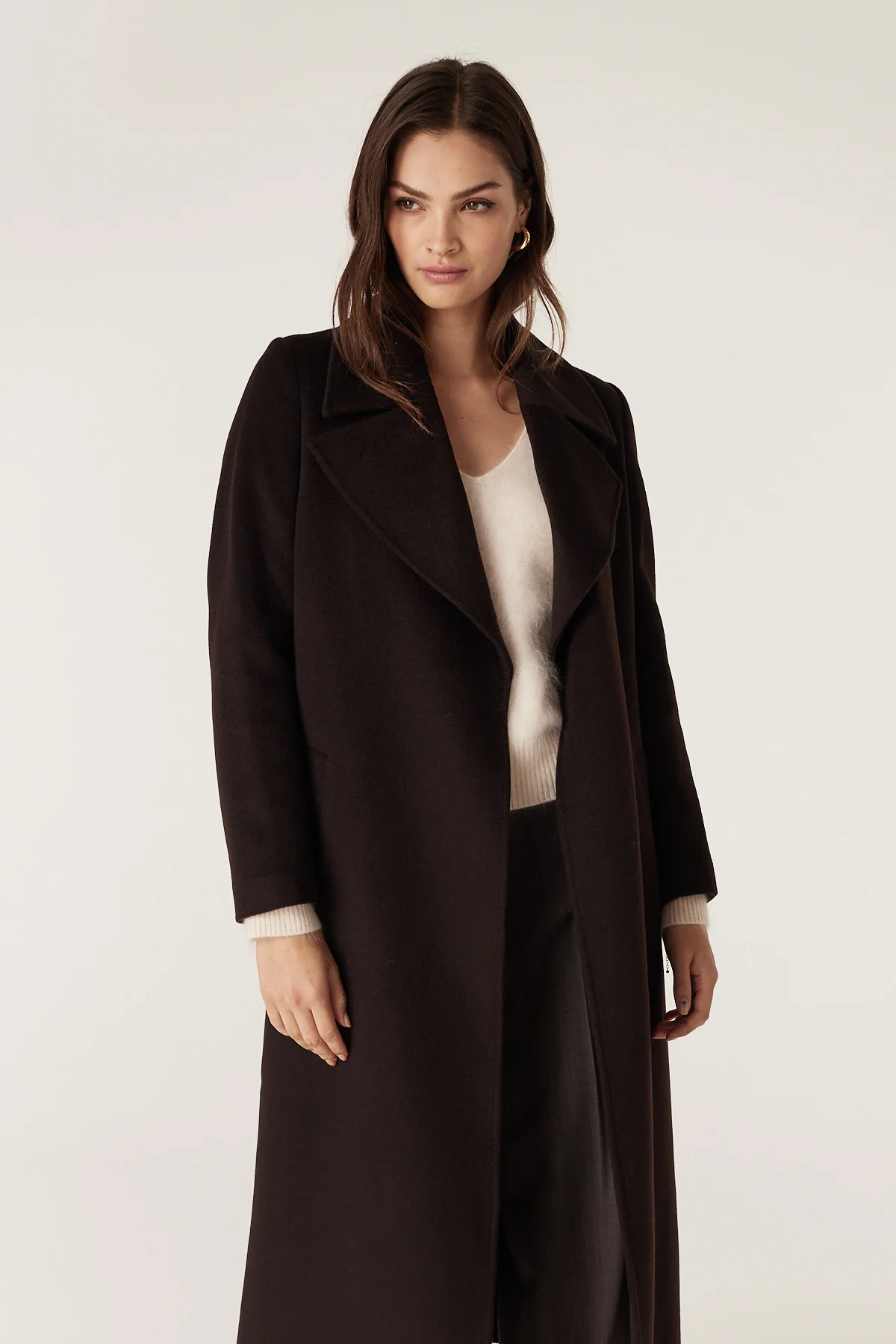The Evans Wool Coat is a tailored fit style crafted from 100% premium wool. Designed with a wrap closure and matching fabric belt, it features functional front pockets, a back hem vent, and pick stitch detailing. Finished with a half lining.