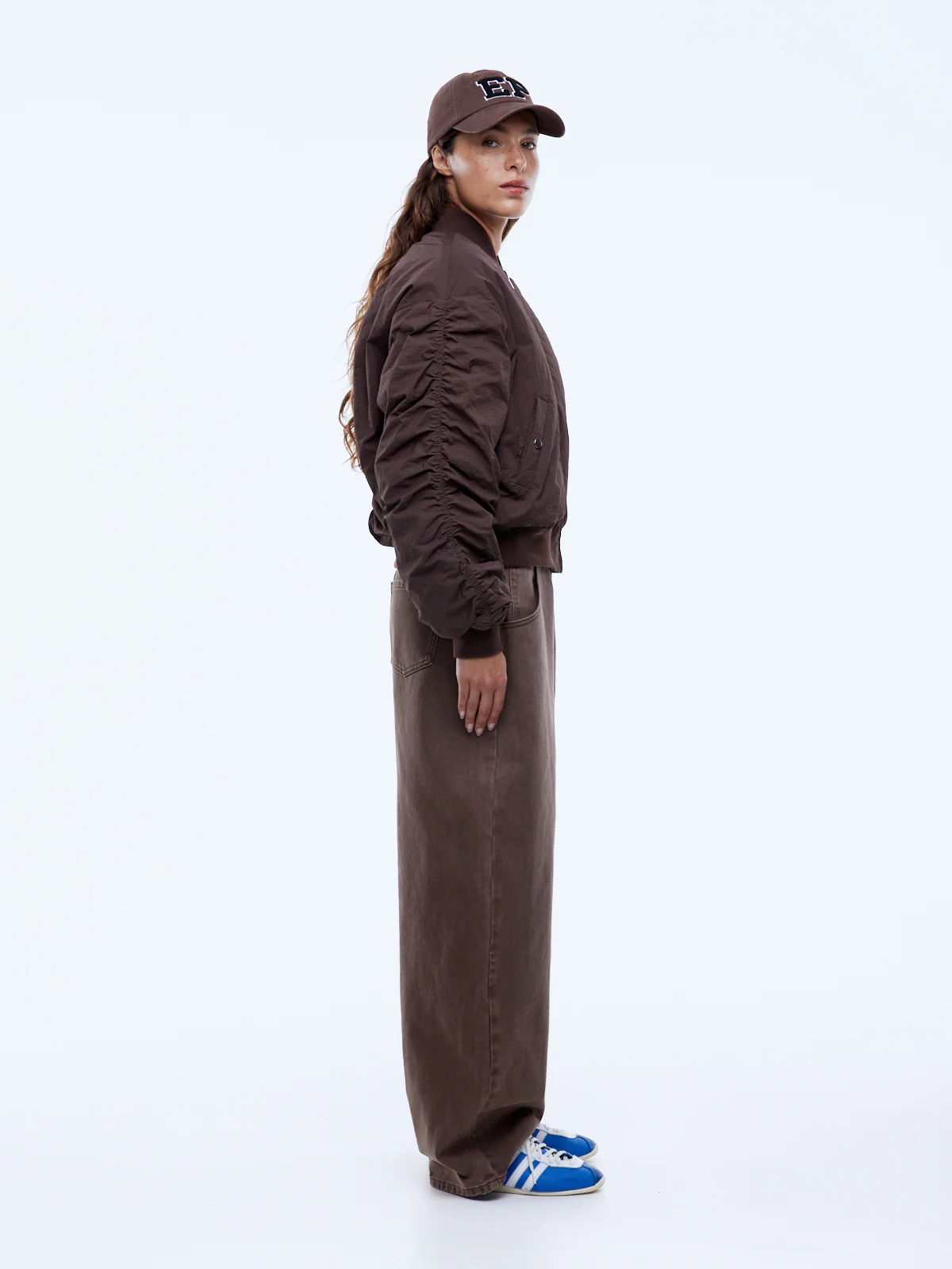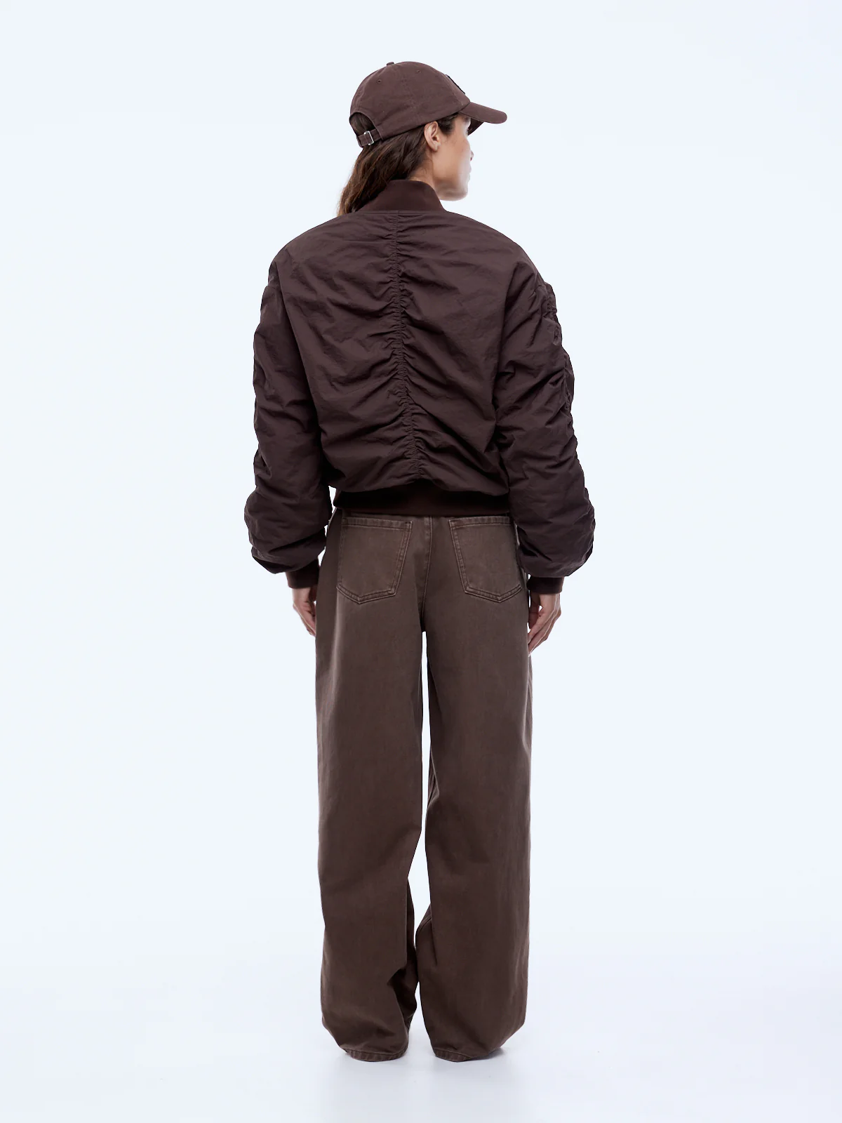 The Lulu Bomber is crafted in lightweight nylon, cut to a relaxed puffer silhouette with dropped shoulders and finished in mocha for easy everyday wear. Designed with a fully lined, quilted build, ribbed collar, cuffs and hem, plus angled front pockets with press-stud closure, this customer-favourite returns in a fresh colourway with confident, street-ready appeal.