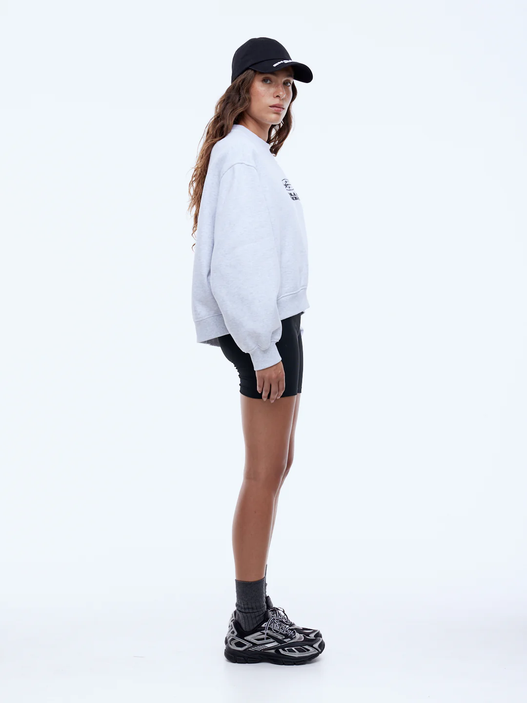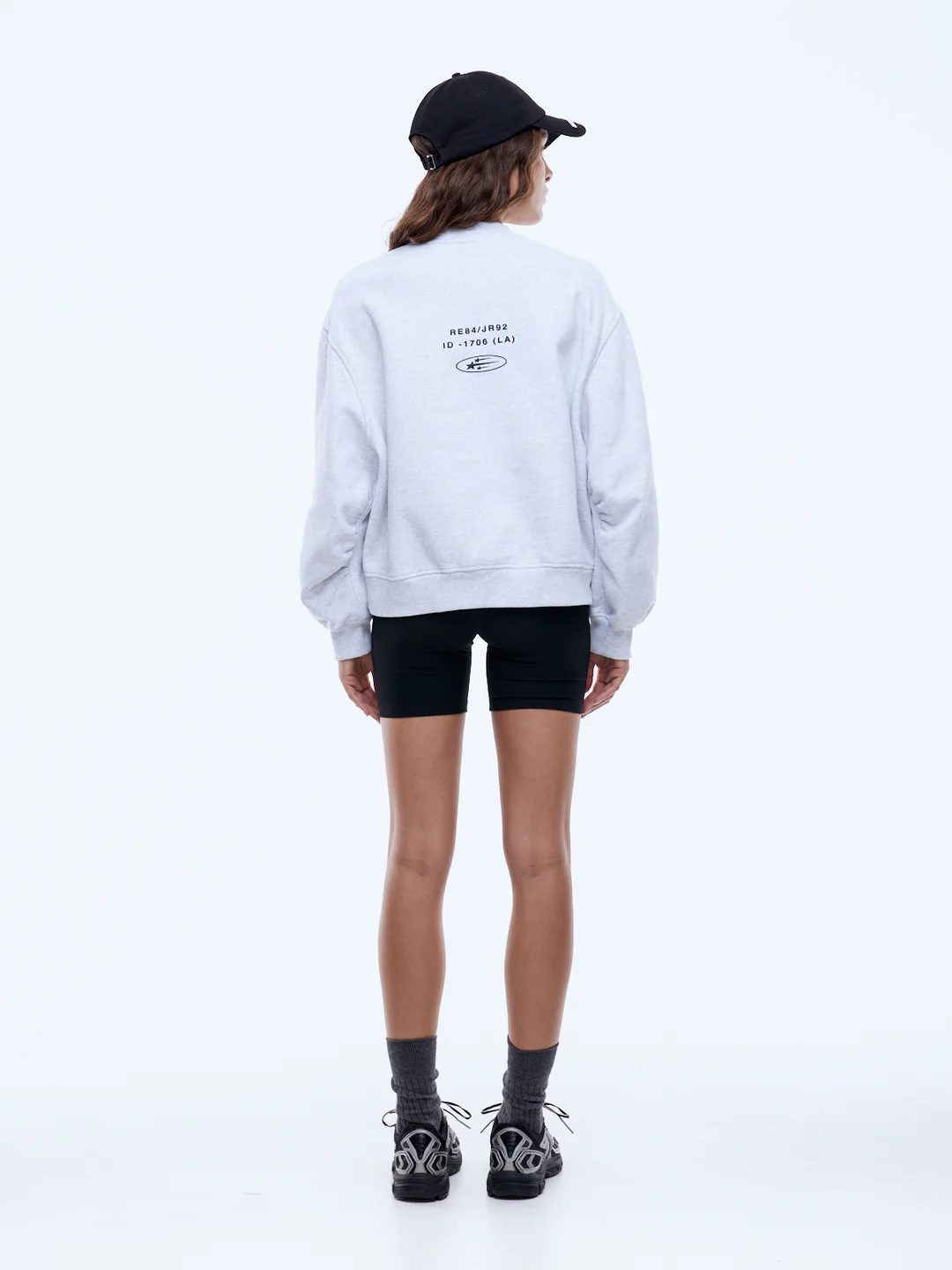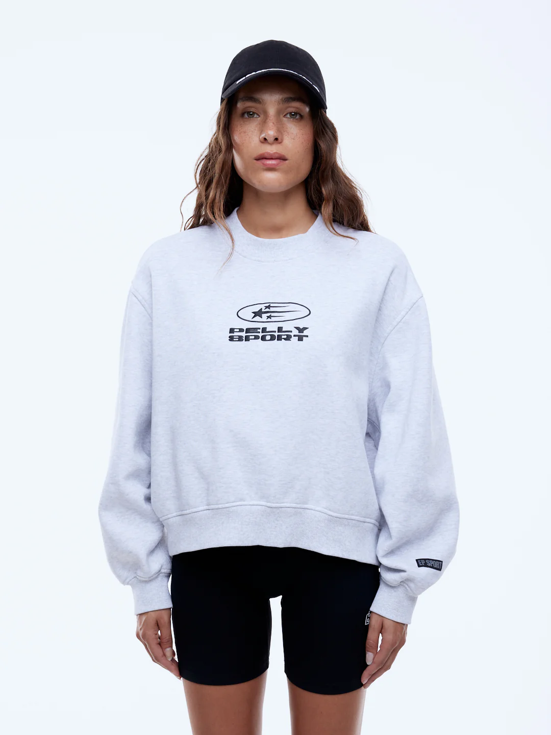 The Pelly Sport ID Logo Sweatshirt is crafted from a cotton-rich brushed fleece with an oversized, slightly cropped silhouette in white marle. Finished with gathered inseam sleeve detailing and a higher-cut neckline, it features puff-print graphics and an Ena Pelly branded sleeve badge for a confident, elevated take on casual layering.