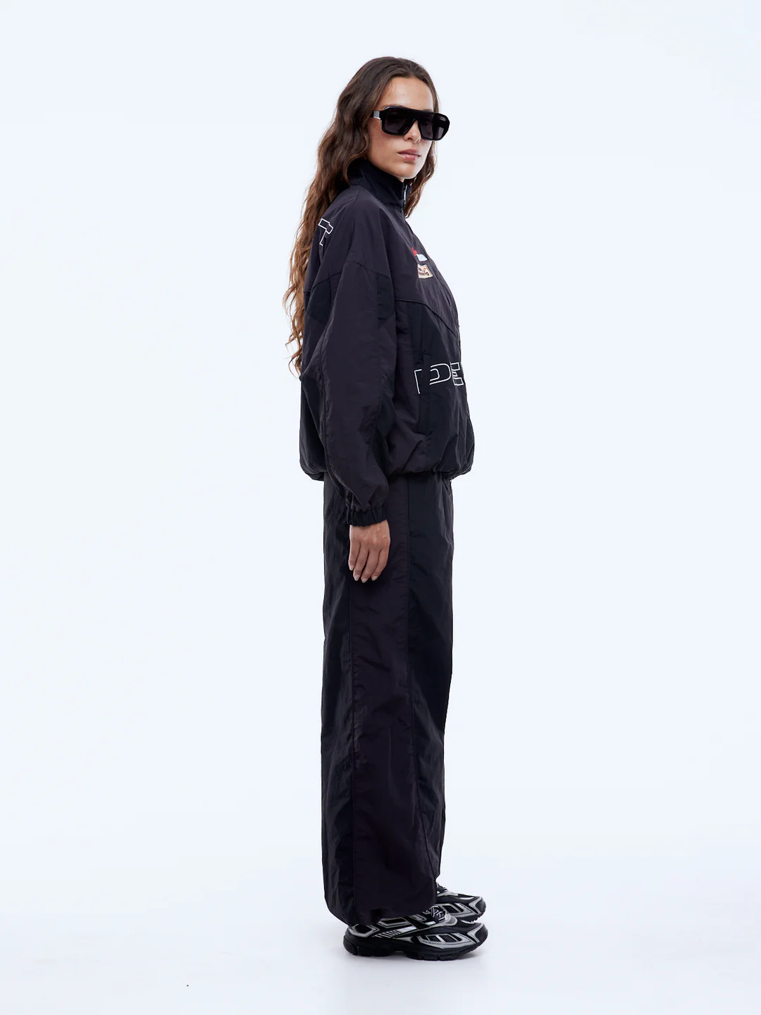 The Pelly Sport Spray Jacket is constructed from lightweight nylon with a relaxed, fully lined silhouette designed for everyday movement. Finished in black with subtle two-tone contrast panelling, it features a two-way zip, elasticated cuffs and an adjustable hem, complete with embroidered Ena Pelly branding for a refined, sporty edge.