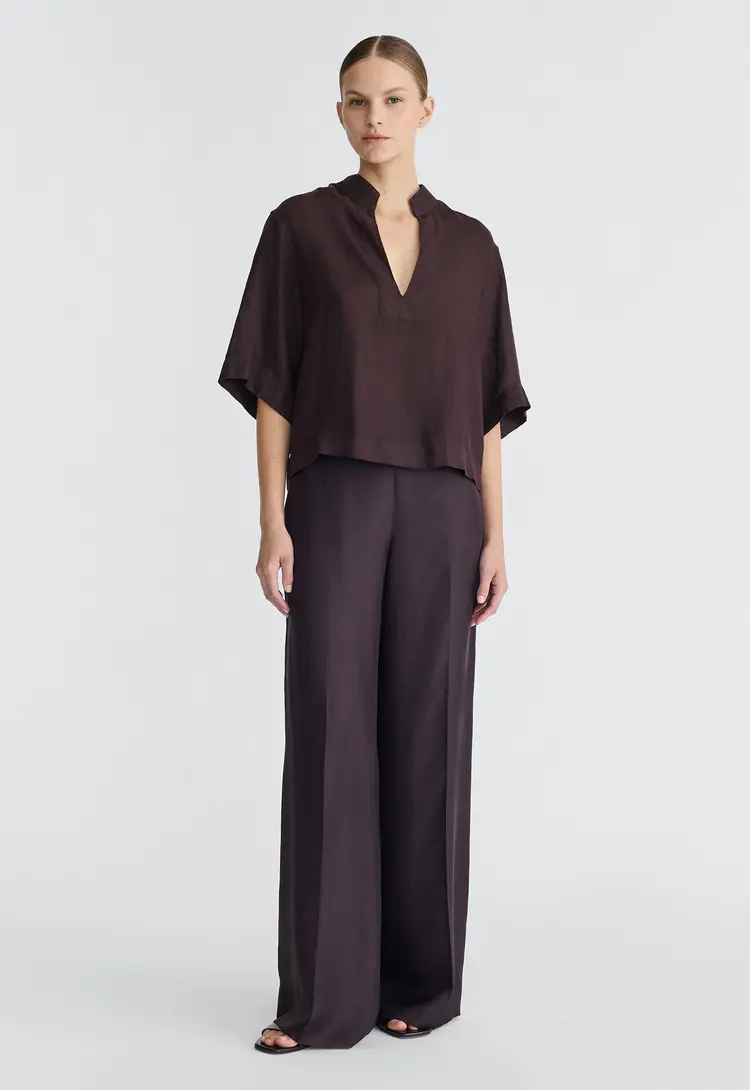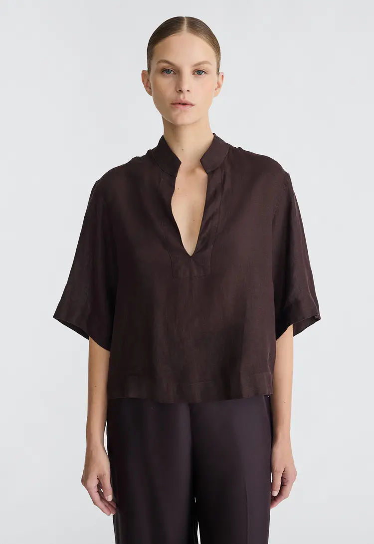Crafted from linen, this v-neck shirt is the perfect blend of comfort and effortless style. With a relaxed fit and subtle tailoring, it offers an easygoing yet polished look ideal for warm weather. Whether layered or worn solo, it’s a versatile wardrobe essential that exudes timeless appeal.