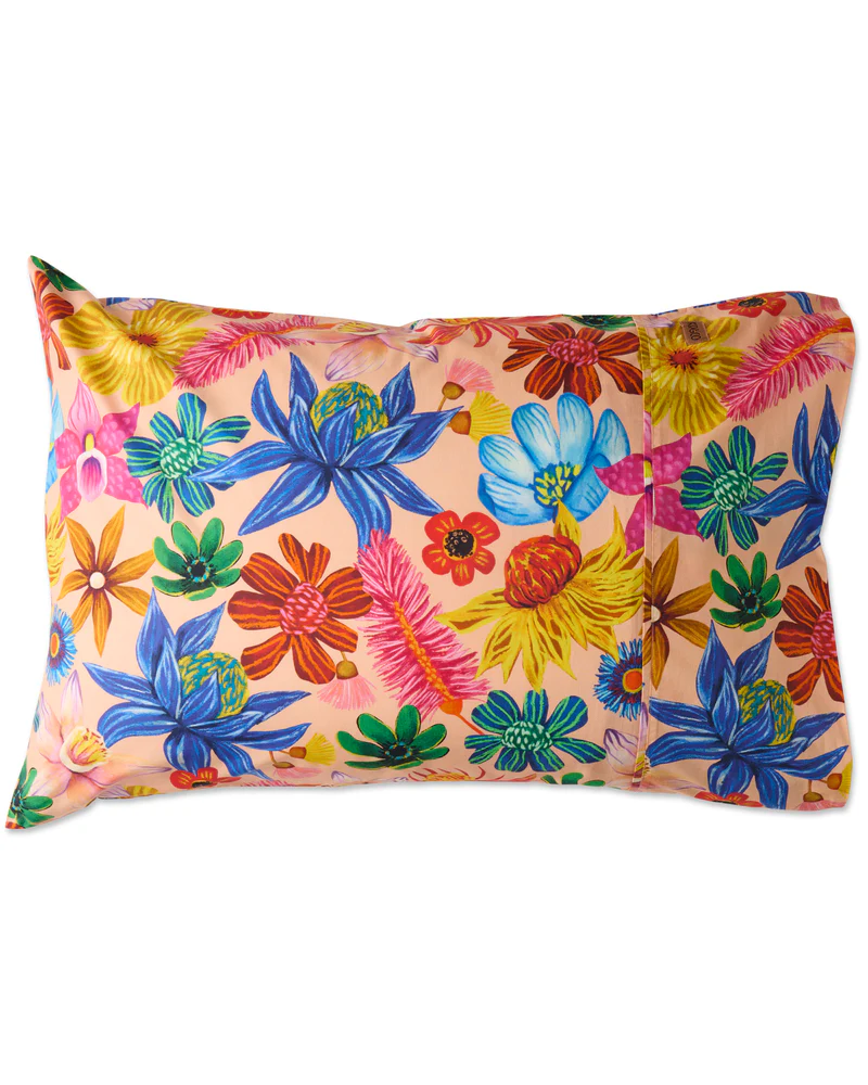 Doze off to dreamland with your head on a cloud of comfort with our Wild Flowers In Bloom Organic Cotton Pillowcases. Bursting with hand-drawn wild flowers in bold, vivid pink, royal blue, and daisy yellow hues on a sorbet-soft peach pink base, these beauties are made from 100% organic cotton for that soft, breathable, just-one-more-nap feel. Pair with the matching Wild Flowers In Bloom Organic Cotton Quilt Cover and layer up with colour for a bed that’s full of joy.
