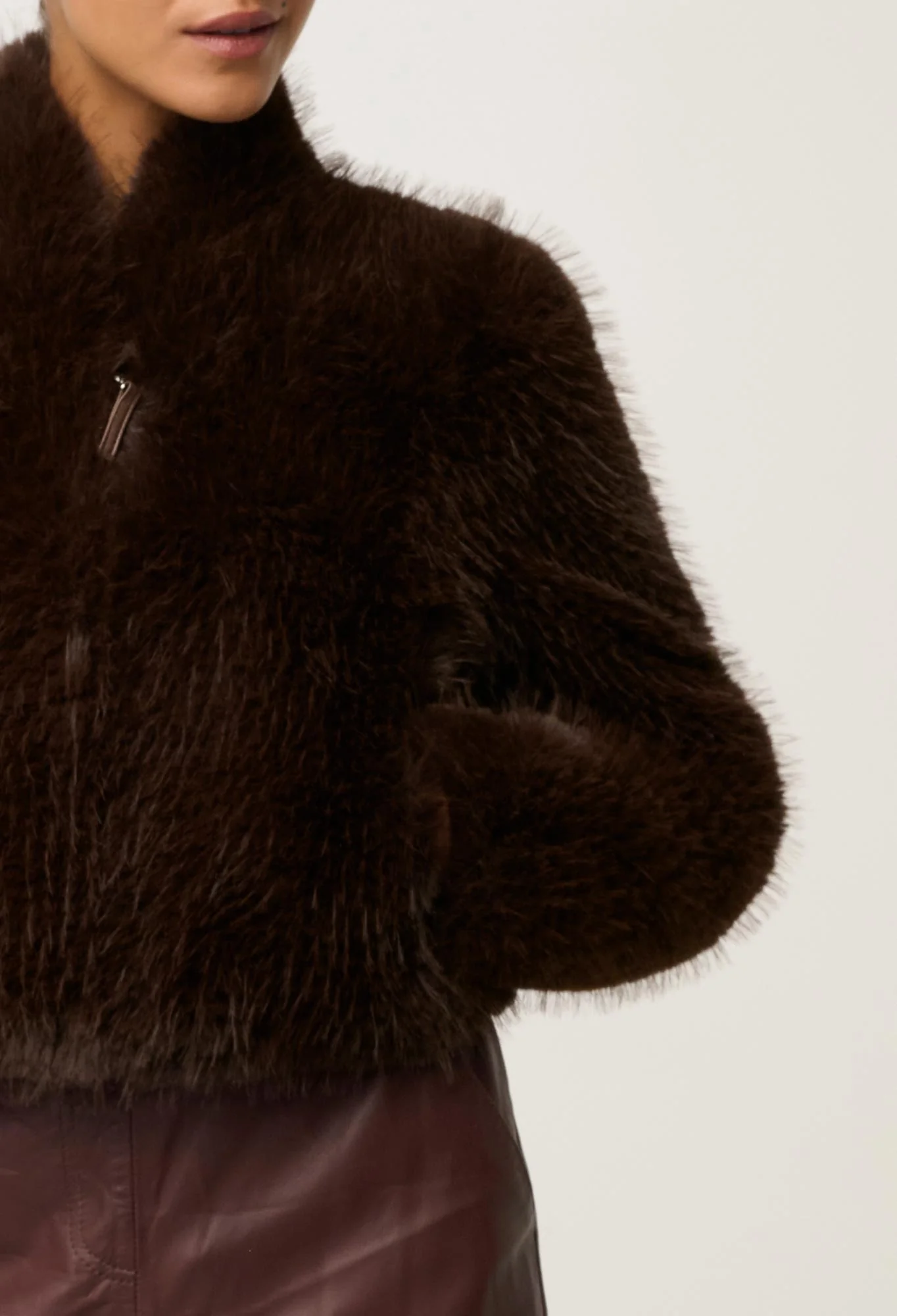 Elevate your cold-weather wardrobe with the luxurious warmth and modern elegance of the Dawn Faux Fur Cropped Jacket in Walnut. Designed to make a statement while remaining effortlessly versatile, this beautifully crafted jacket features plush high-pile faux fur that delivers both sophisticated texture and cozy comfort.