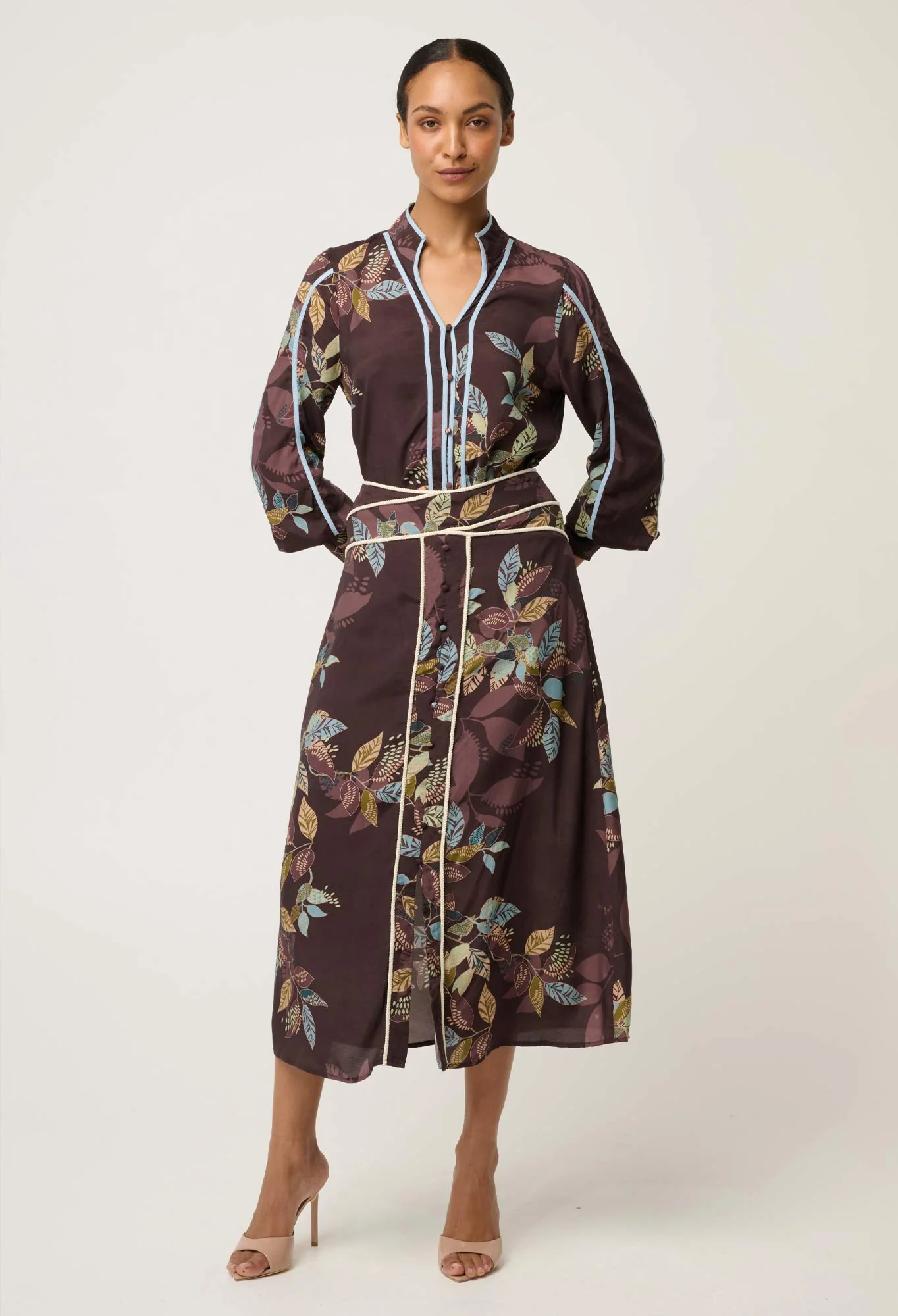 Artful design meets effortless elegance in the Harper Viscose Faille Criss Cross Waist Panel Skirt in Ember Vines. Crafted from luxurious viscose faille, this beautifully structured skirt offers a smooth finish with a subtle body, allowing it to hold its shape while draping gracefully with movement.