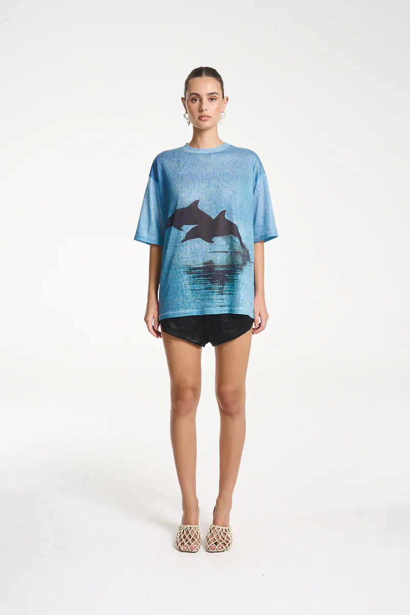 The Double Dolphin Tee is a lightweight slightly sheer oversized tee offering a relaxed fit.