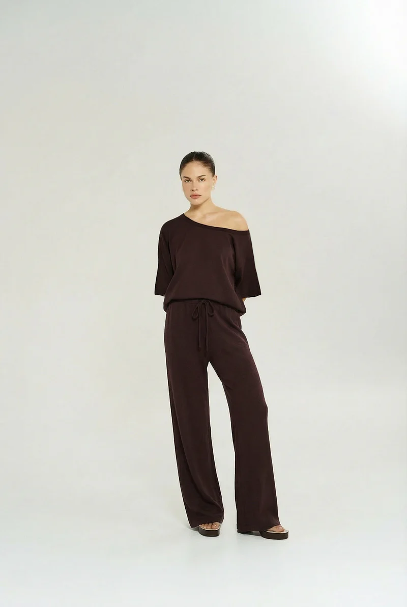 The Knit Tee has been woven from 100% cotton in rich Chocolat offering a relaxed every day design. Designed with versatility and style in mind the top can be worn off the shoulder. This Tee combines comfort with a refined finish, making it ideal for both casual and polished looks.