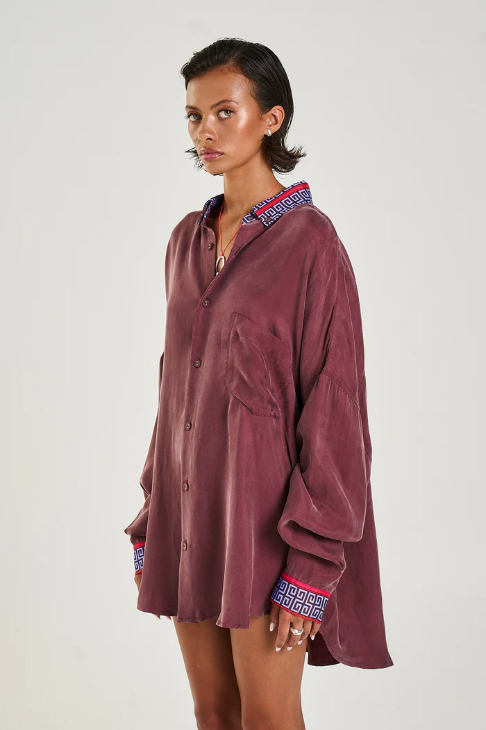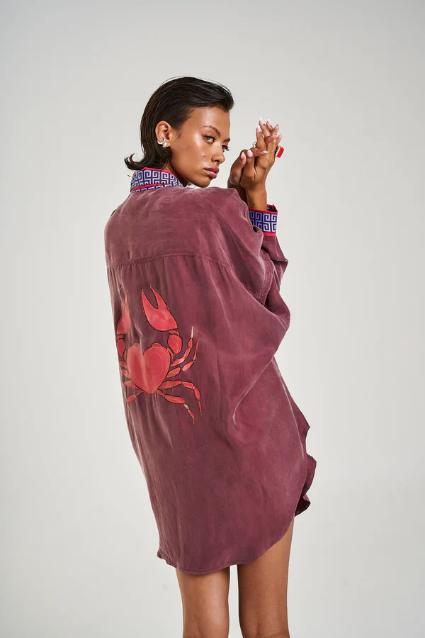 The LS Oversized Shirt featuring the SS Sol Script Trim and Zodiac Cancer Crab on the back. Expertly crafted offering a structured yet relaxed fit with oversized cuffed sleeves.